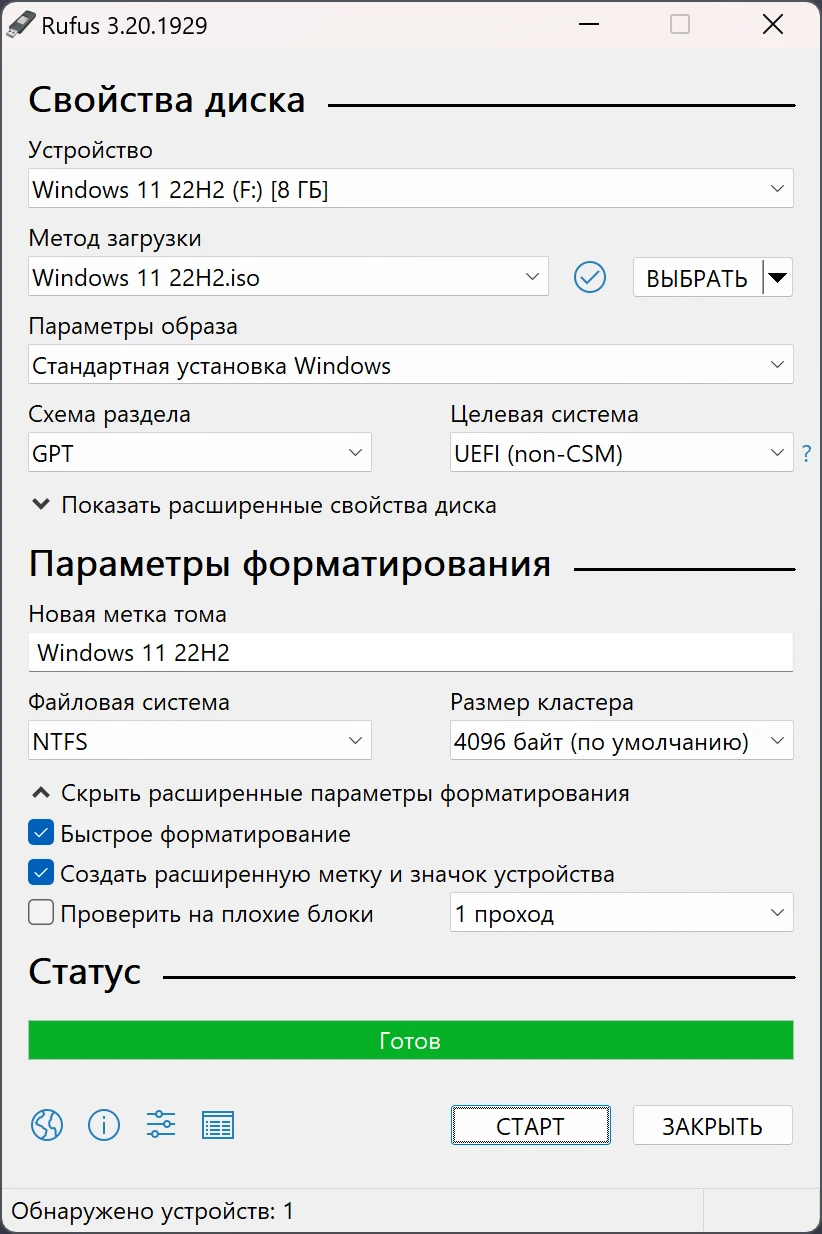 - ✅ Готово — можно использовать флешку для загрузки.